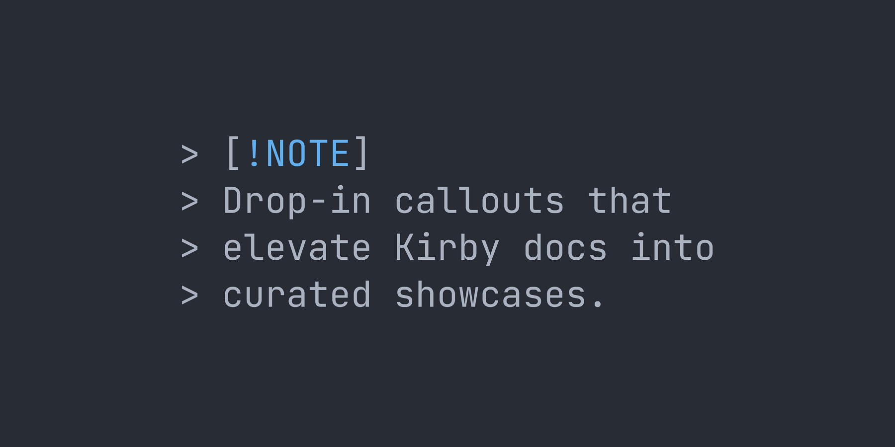 Jakub Pelák 2 Plugins GitHub Partner Featured Callouts Adds GitHub-style callouts to KirbyText/Markdown using [!TYPE]. Turning them into styled blocks on your site. All plugins Callouts Adds GitHub-style callouts to KirbyText/Markdown using [!TYPE]. Turning them into styled blocks on your site. Content Creation Text Markdown Panel buttons A custom Kirby Panel field that features a button. Panel UI